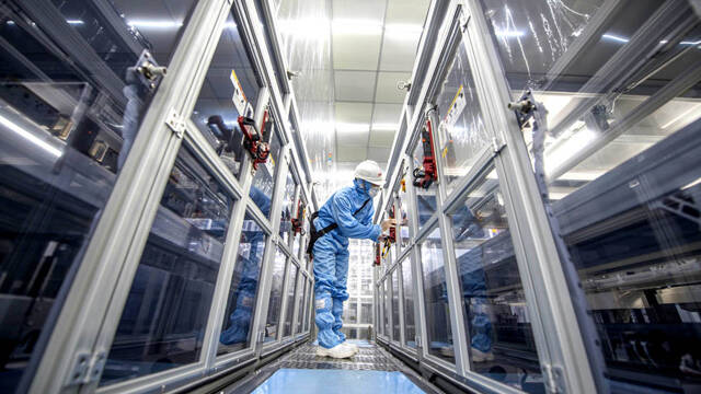 重庆市人力资源和社会保障局相关负责人透露,此举是为扩大“鸿雁计划”政策激励范围,大力支持用人单位引才。补充政策显示,“鸿雁计划”在人才认定方面,按照行业领域分为三档。图为重庆一家公司的光电生产线上,工程师在生产线上操作设备 整理自网络
