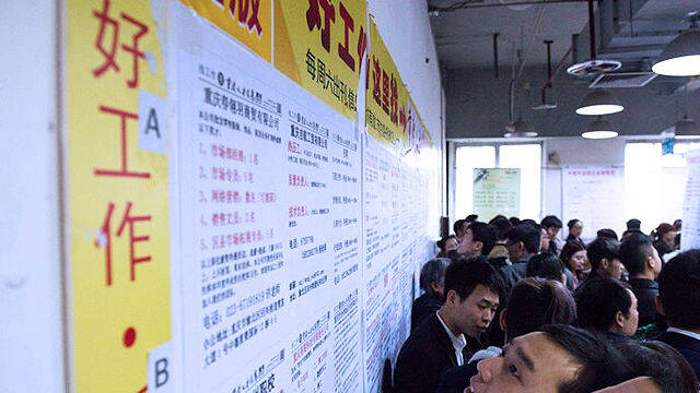 第二档,主要包括教育、公共管理、社会组织、电力、热力、燃气及水生产和供应、卫生和社会工作、科学研究、技术服务、信息传输、软件和信息技术服务等行业人才。按照ABC类划分,年薪从40万元起。图为重庆某人才市场求职场景 整理自网络